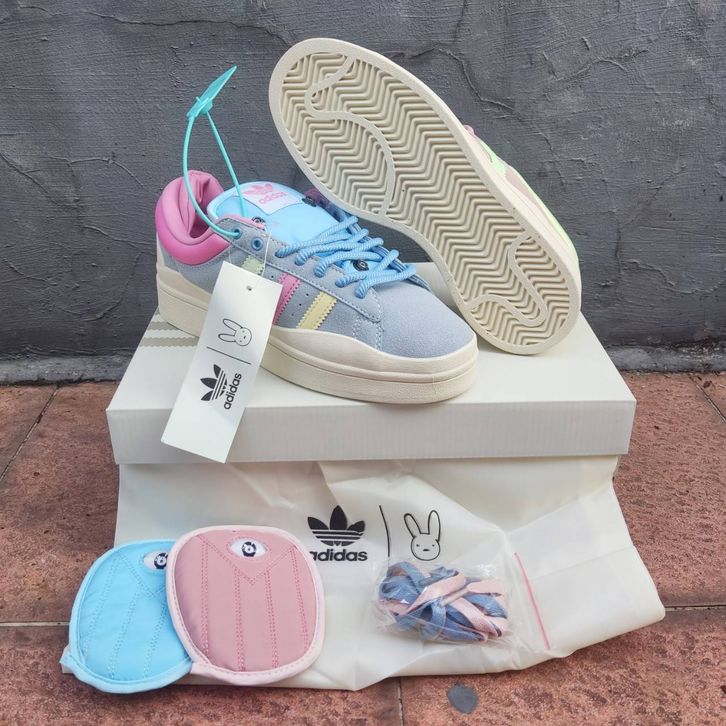 SEPATU ADIDAS CAMPUS X BAD BUNNY RAINBOW PASTEL ORIGINAL BNIB FULL TAG BARCODE BAHAN LEATHER KULIT