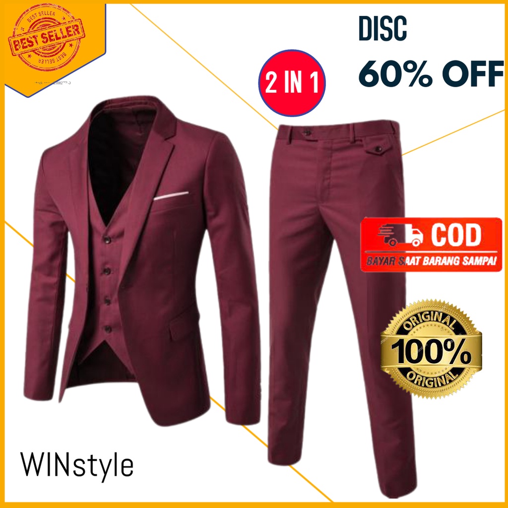 SETELAN JAS 2 IN 1 MAROON JAS DEWASA PRIA BLAZER FORMAL
