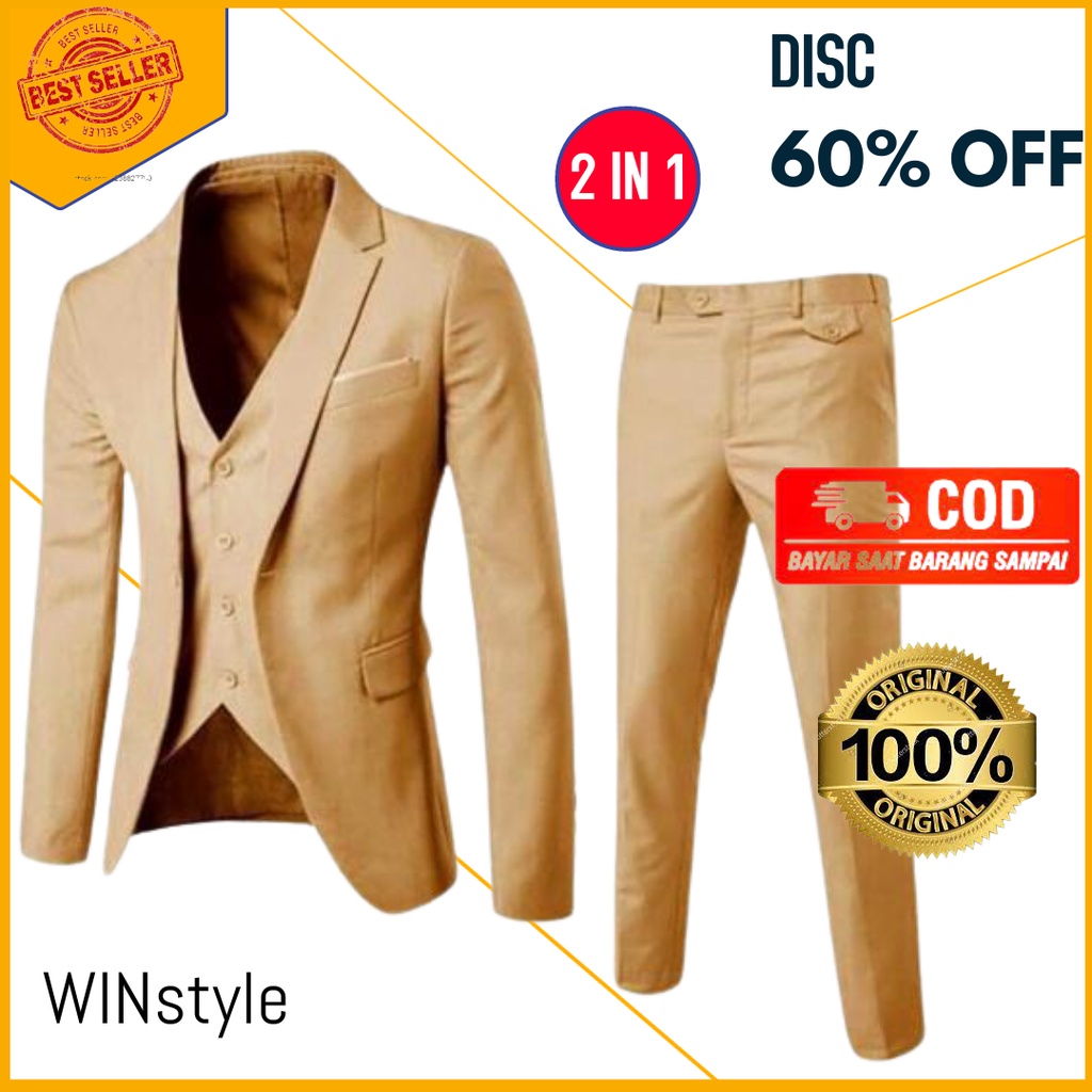 SETELAN JAS CREAM 2 IN 1 BLAZZER PRIA DEWASA SETELAN JAS DEWASA