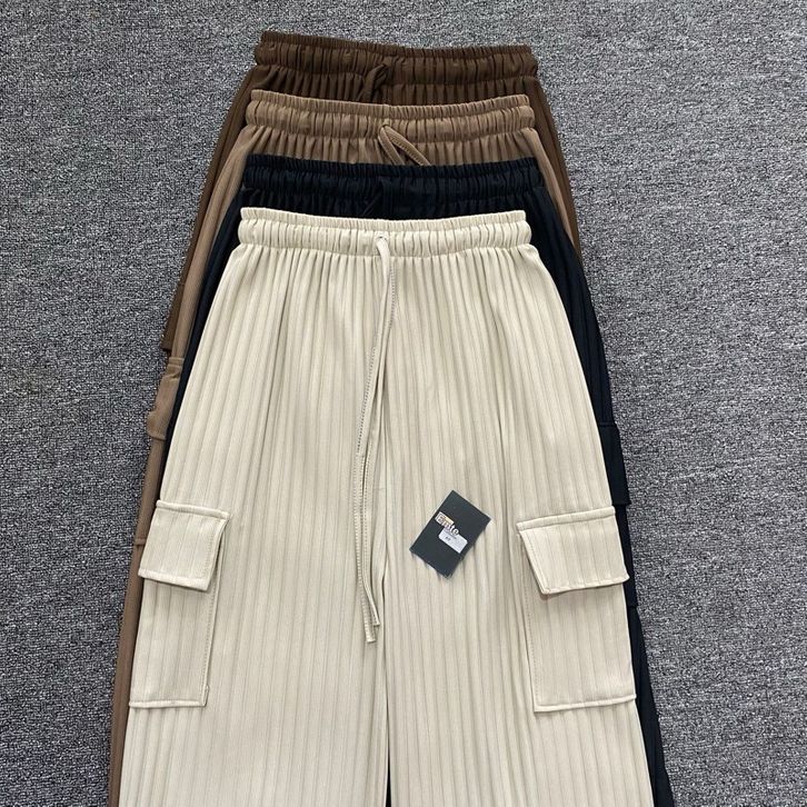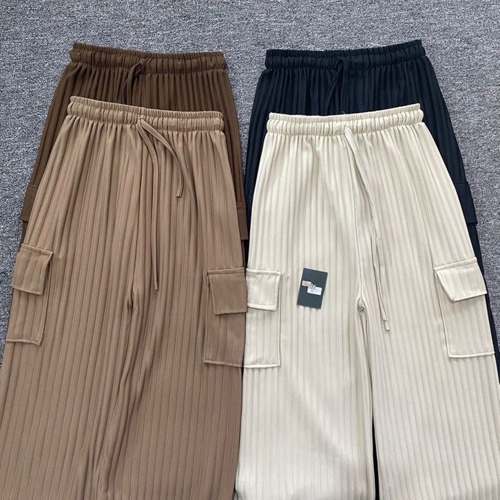 Celana Kulot Knit Cargo Wanita Pants Cewe High Waist Kasual Terlaris