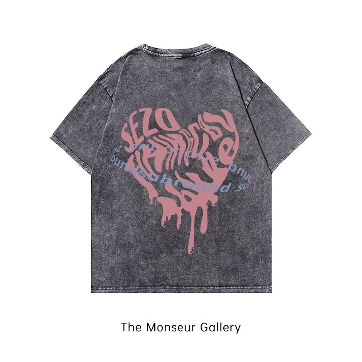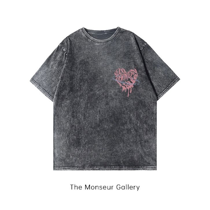 Kaos Pria Original The Monseur Gallery T-shirt Washed Oversize Fashion Heart Graffiti | Kaos Hitam A0518 Terlaris