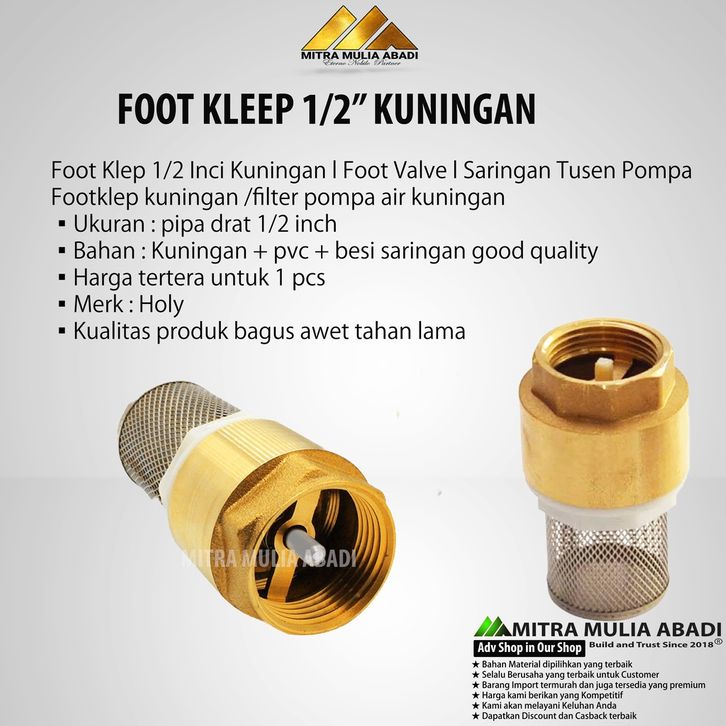FOOT KLEP 1/2 Inci / SARINGAN POMPA TUSEN KUNINGAN L FOOT VALVE / KEPERLUAN RUMAH ALAT TUKANG