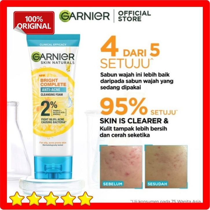 Paket Skincare Garnier Bright Complete Anti Acne Complete Set Untuk Maksimal Lawan Jerawat dan Bekas Jerawat /Serum Je