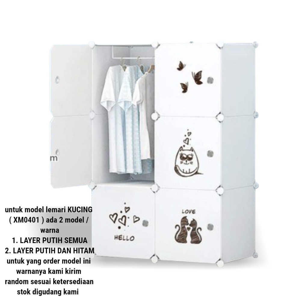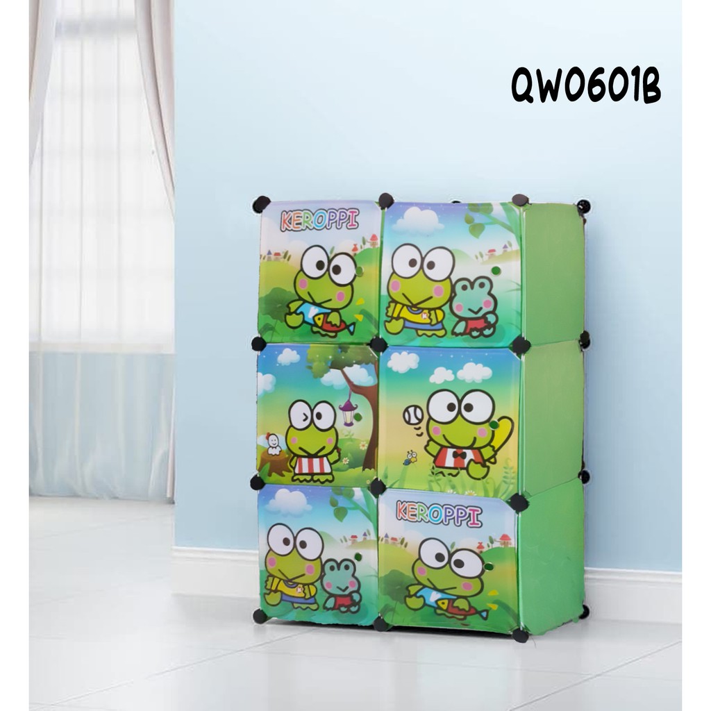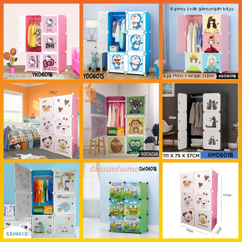 LEMARI PAKAIAN PLASTIK 6 PINTU LEMARI PORTABLE KARAKTER ANAK RAK BAJU GANTUNGAN