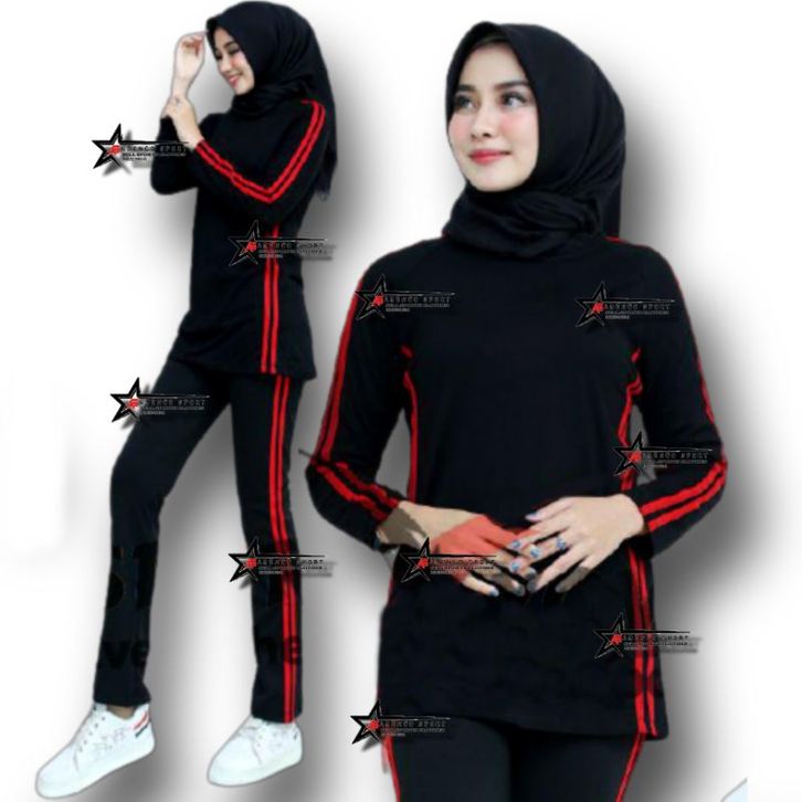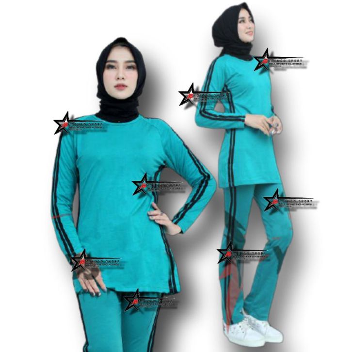 Setelan Baju Olahraga Guru Celana Training Sport Kaos Panjang Muslimah Perempuan Senam Aerobik Gym Rayon Premium Halus