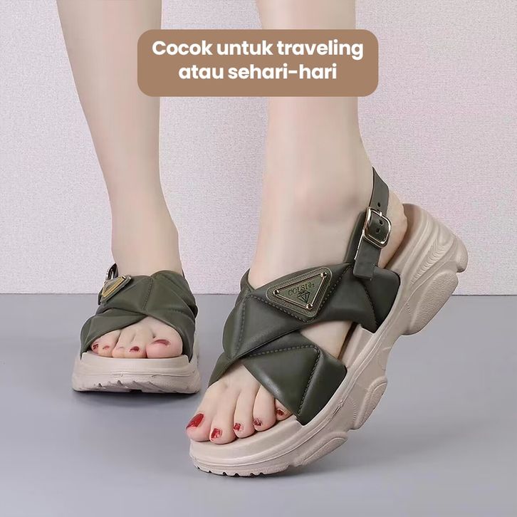 Sendal Wanita kekinian sendal Sendal Wedges Santai HSN129