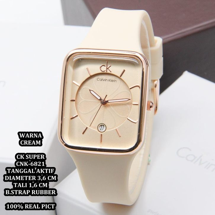 Jam Tangan Wanita Mewah Tali Rubber Tanggal Aktif Free Box Baterai Cadangan
