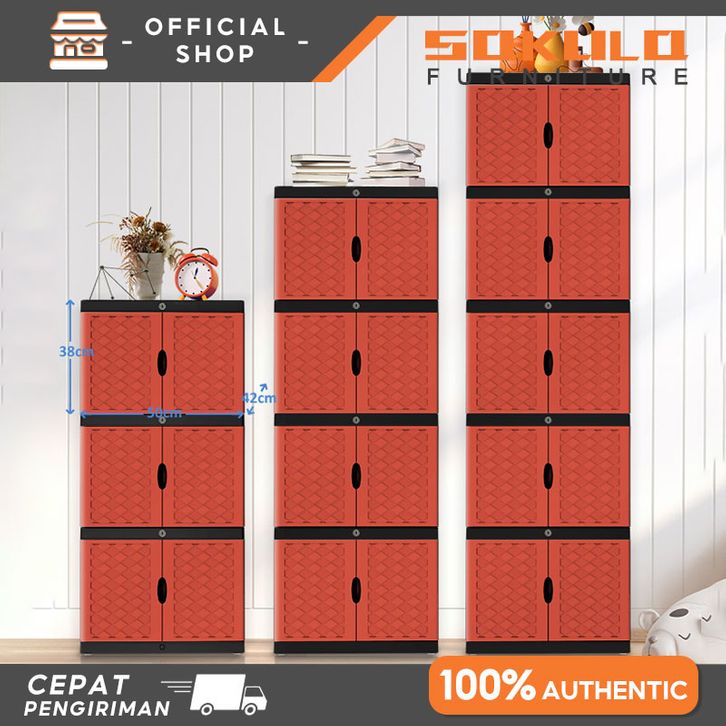 Sakula Lemari pakaian plastik lemari plastik Full Kunci Lemari Pakaian 3/4/5 SUSUN (SLG-merah)