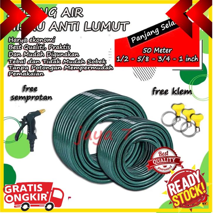 Selang Air 50 Meter / Selang Air 1/2 5/8 3/4 Inch / Selang Air Taman Hijau Anti Lumut Tebal Termurah