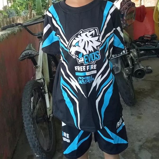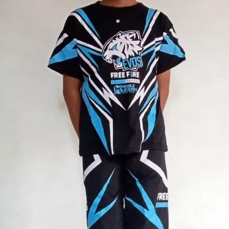 Setelan Baju Kaos Free Fire FF Evos Anak Laki Laki Umur 1 Sampai 11 Tahun Lengan Santai Satu Set Atasan Bawahan Stylish