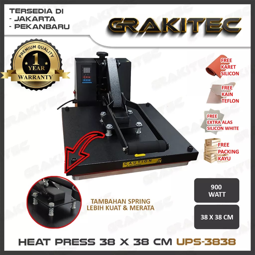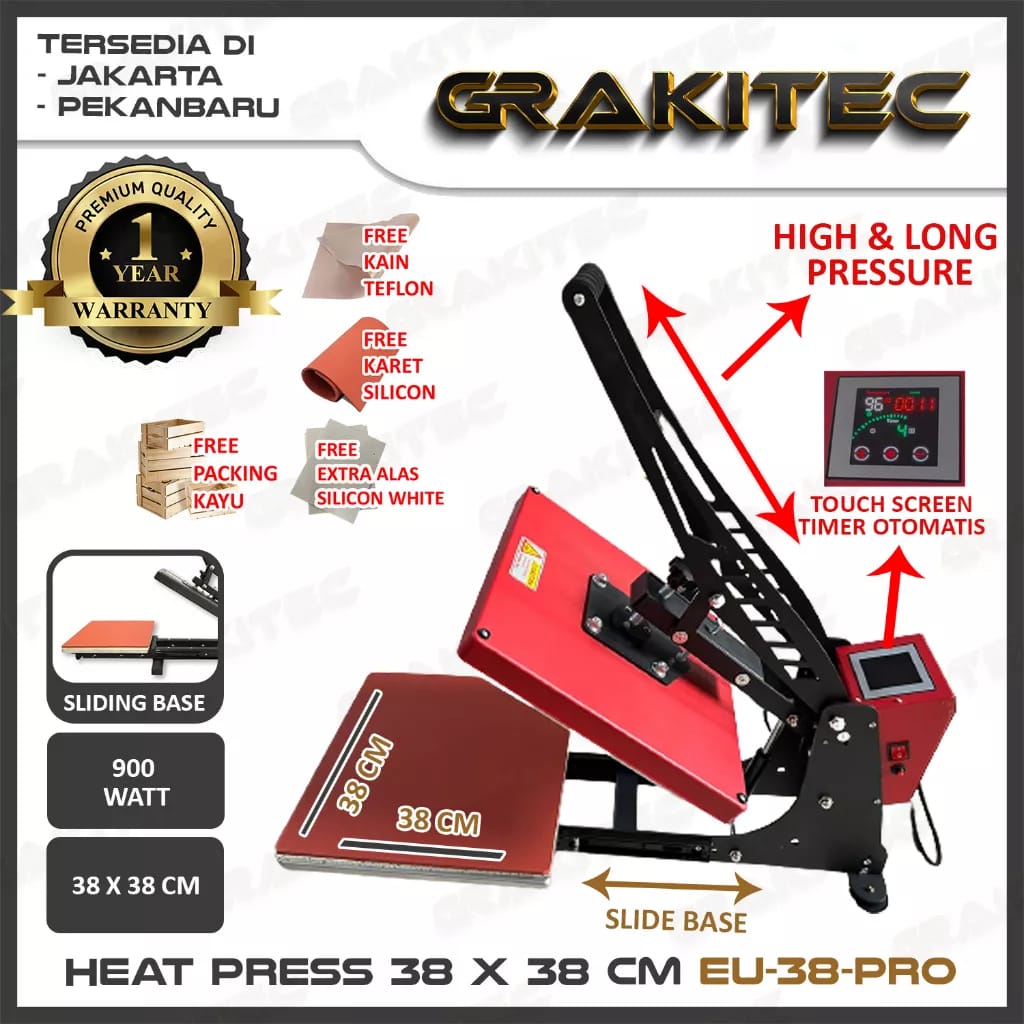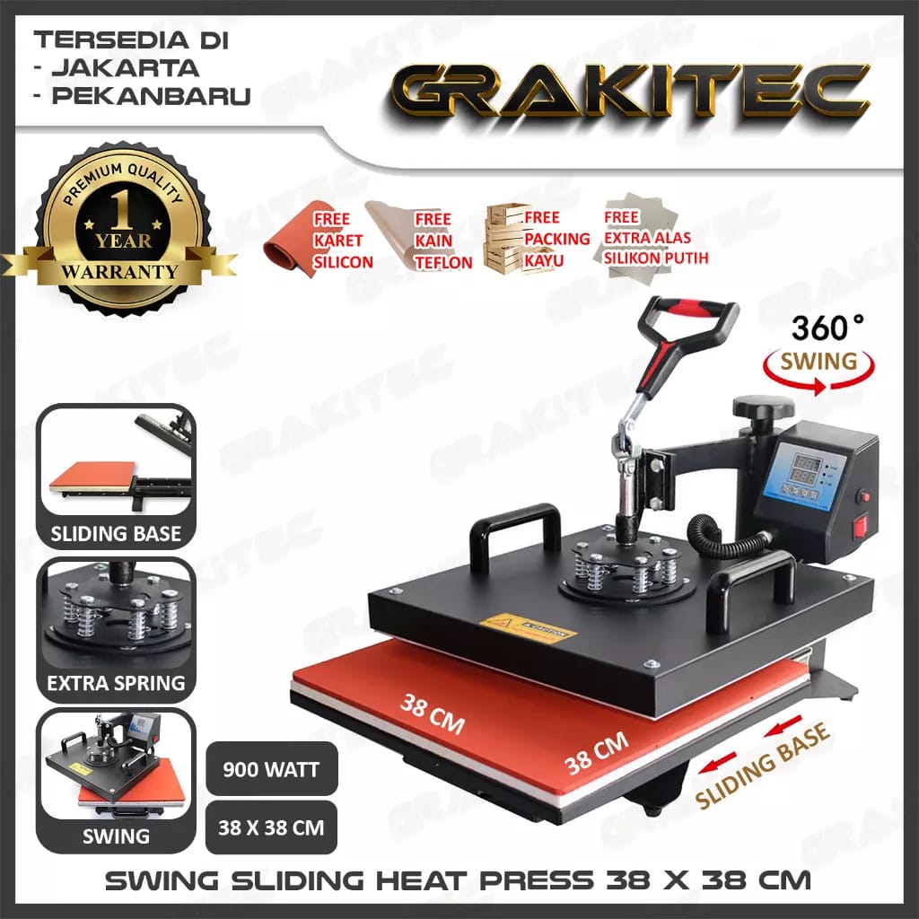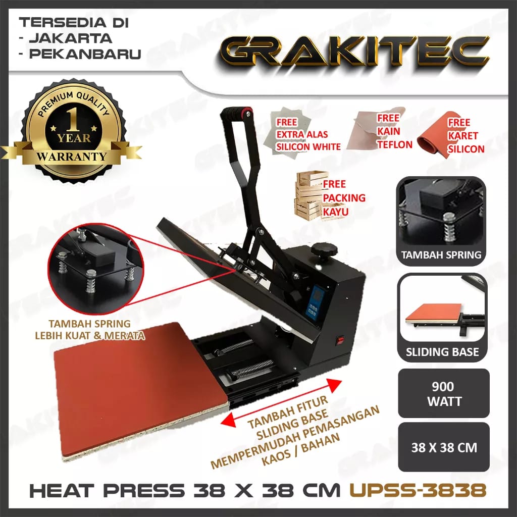 Mesin Heat Press Sablon Kaos 38x38 HIGH PRESSURE Premium Extra Spring Extra Sliding GRAKITEC