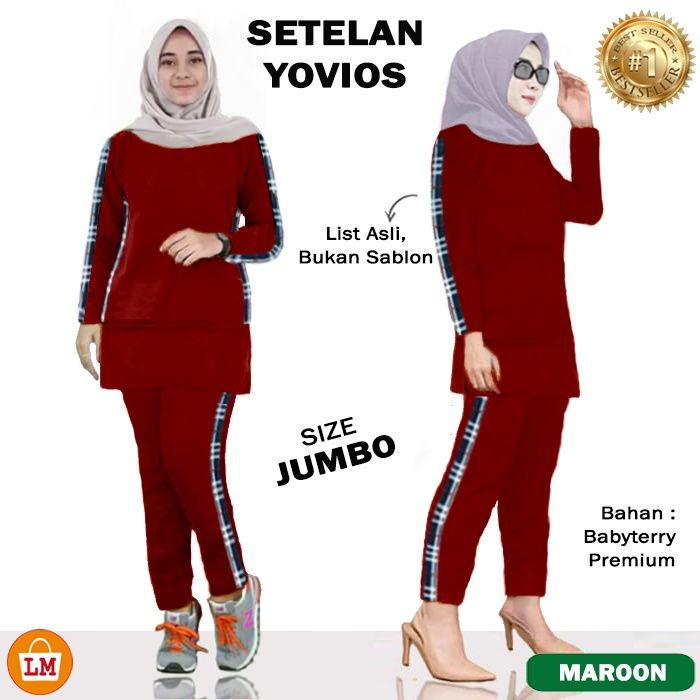 Setelan Pakaian Olahraga Senam Training Cewek Set Yovios Baju Dan Celana Lengan Panjang Sporty Cewek