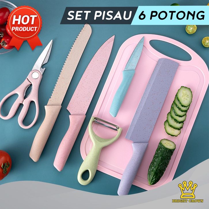 Pisau Dapur Set 6 in 1 Bright Crown Kitchen Knife Set Bahan Stainless Steel