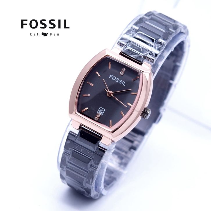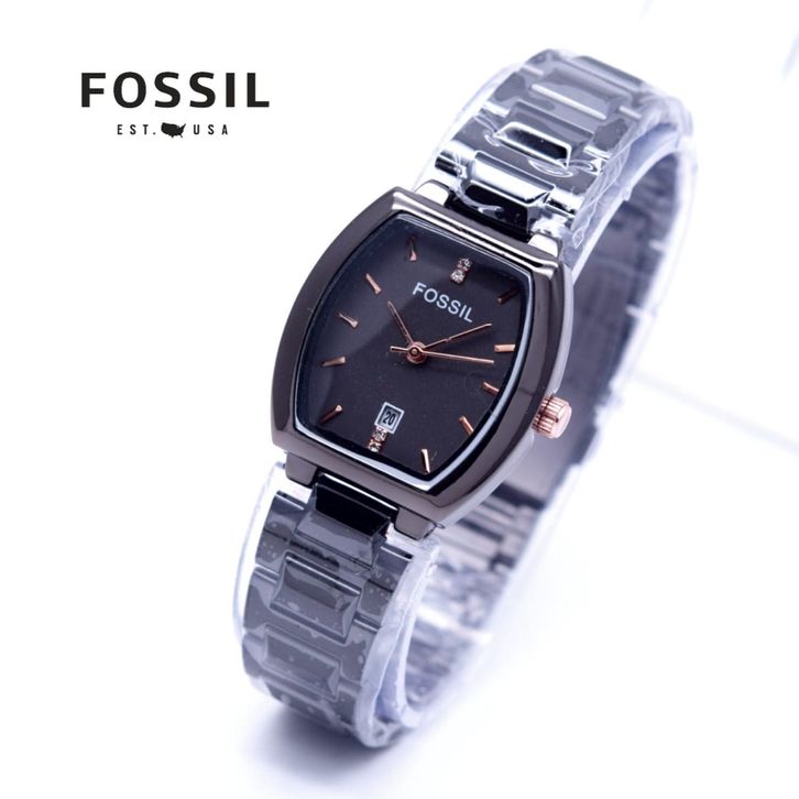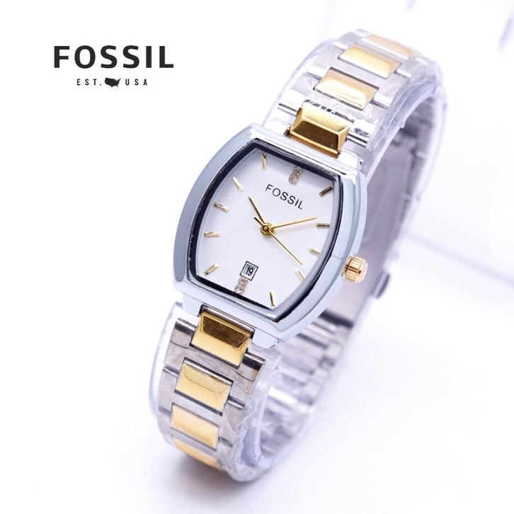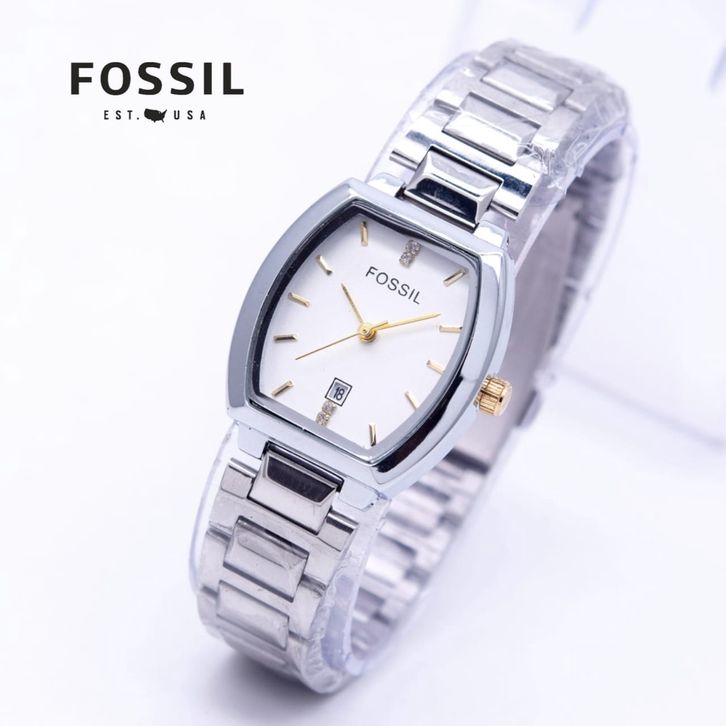 Jam Tangan Wanita Mewah Tali Rantai Tanggal Aktif Case Oval Free Box Baterai Cadangan