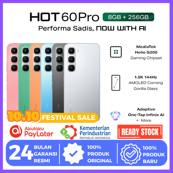 Infinix Hot 60 Pro 8/256GB NFC - Up To 16GB Extended RAM - Garansi Resmi Infinix Indonesia