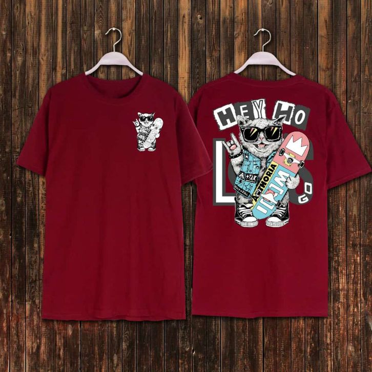Kaos Pria Distro Tshirt Terbaru Samurai Jepang Hey Ho Warna Maroon Lengan Pendek Motif Sablon Bergambar Keren