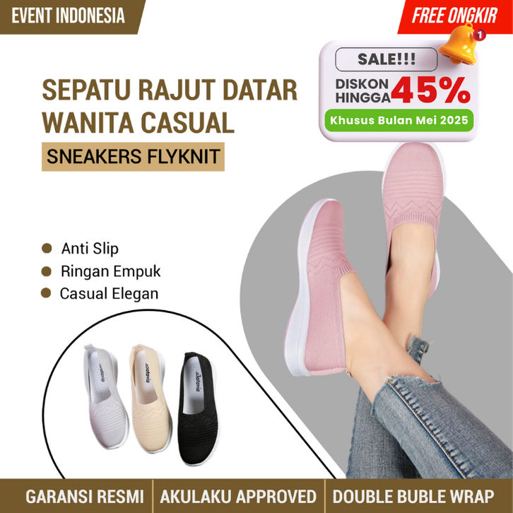 Sepatu Rajut Datar Cewe Sneakers Casual Cewe Selop Kerja Kuliah Fashion Flyknit Udara Berpenduduk Bahan Berkualitas