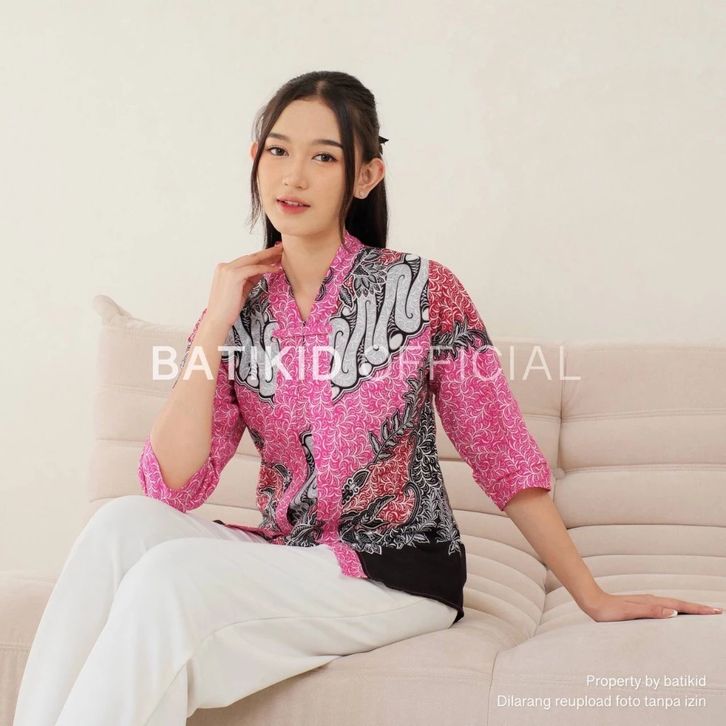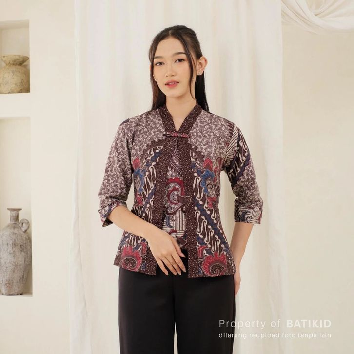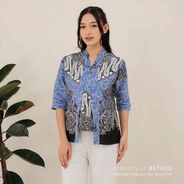 Atasan Batik Wanita Lengan 3/4 Baju Batik Kerja Casual Bahan Katun Asli Bolero 3.0