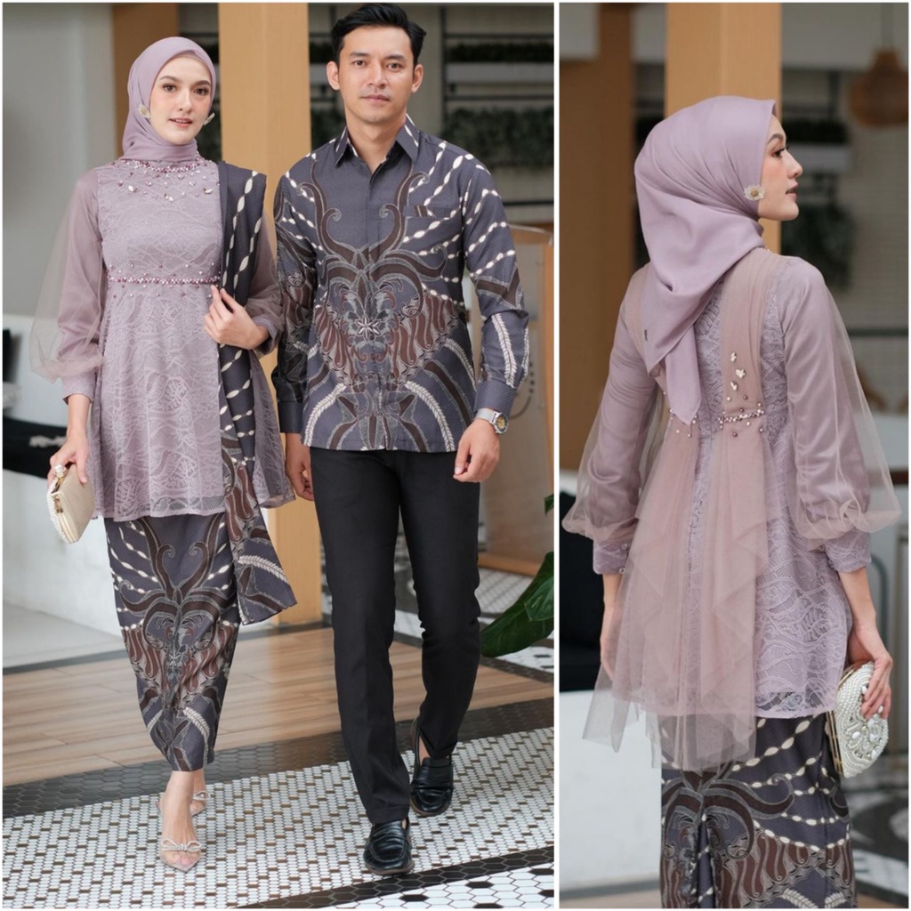 KEBAYA MODERN WISUDA COUPLE BATIK BRUKAT REMAJA TERBARU MEWAH SATU SET PASANGAN KELUARGA BAJU PESTA TUNANGAN