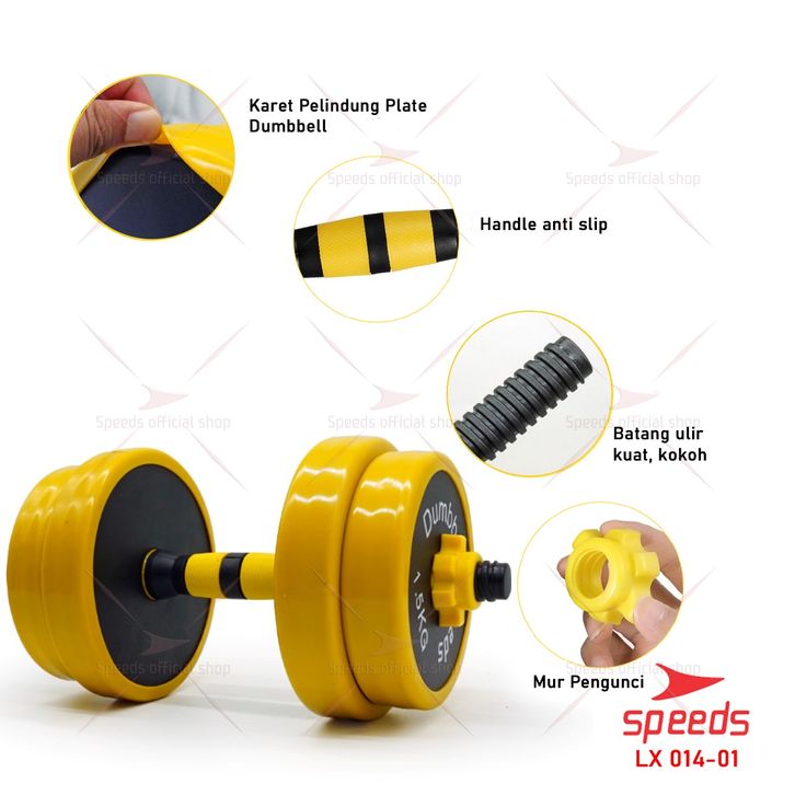 SPEEDS Dumbell Barbel Set Max 15kg Dumbel Dumble Alat Fitness 2 Pcs 014-1