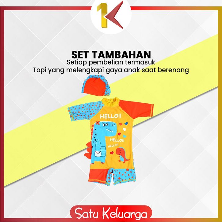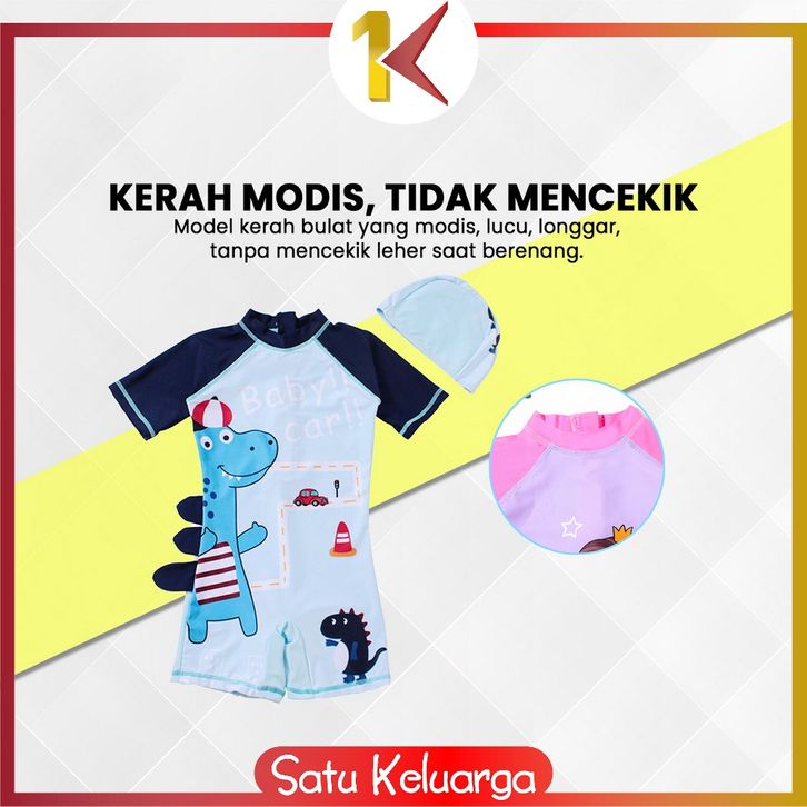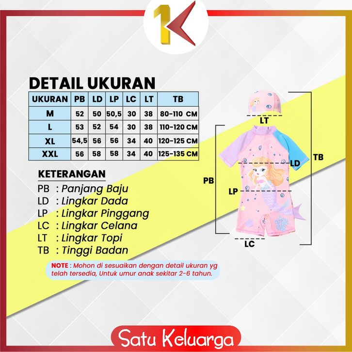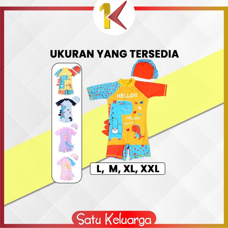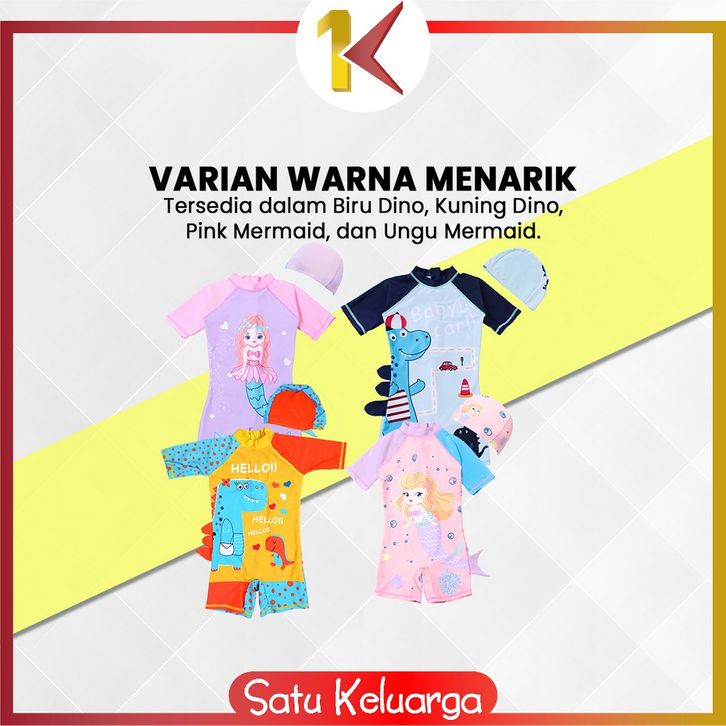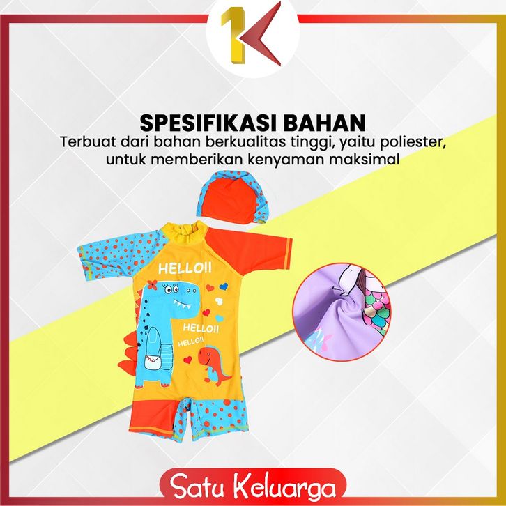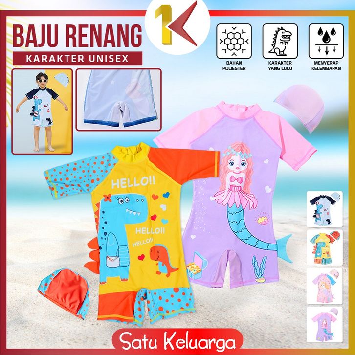 SK-P587 Baju Renang Anak Perempuan Karakter Mermaid Set Topi / Swimsuit Kids Dino Unisex / Pakaian Renang Anak Cewek