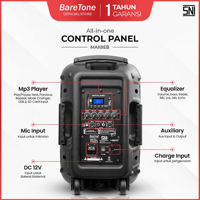 Speaker Portable Amplifier Wireless BARETONE MAX 8 EB 8 inch Original MAX 8EB