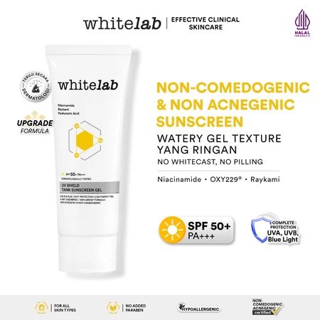 Whitelab UV Shield Tank Sunscreen Gel SPF 50++ PA++++ - Sunblock Pelindung Sinar Matahari UV A UV B Blue Light Dengan Ni