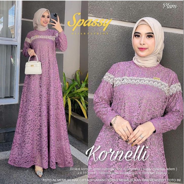 Kornelli Dress Maxy Gamis Muslim Wanita Brukat Gliter Premium All Size Fit To XL Besar OOTD Kondangan