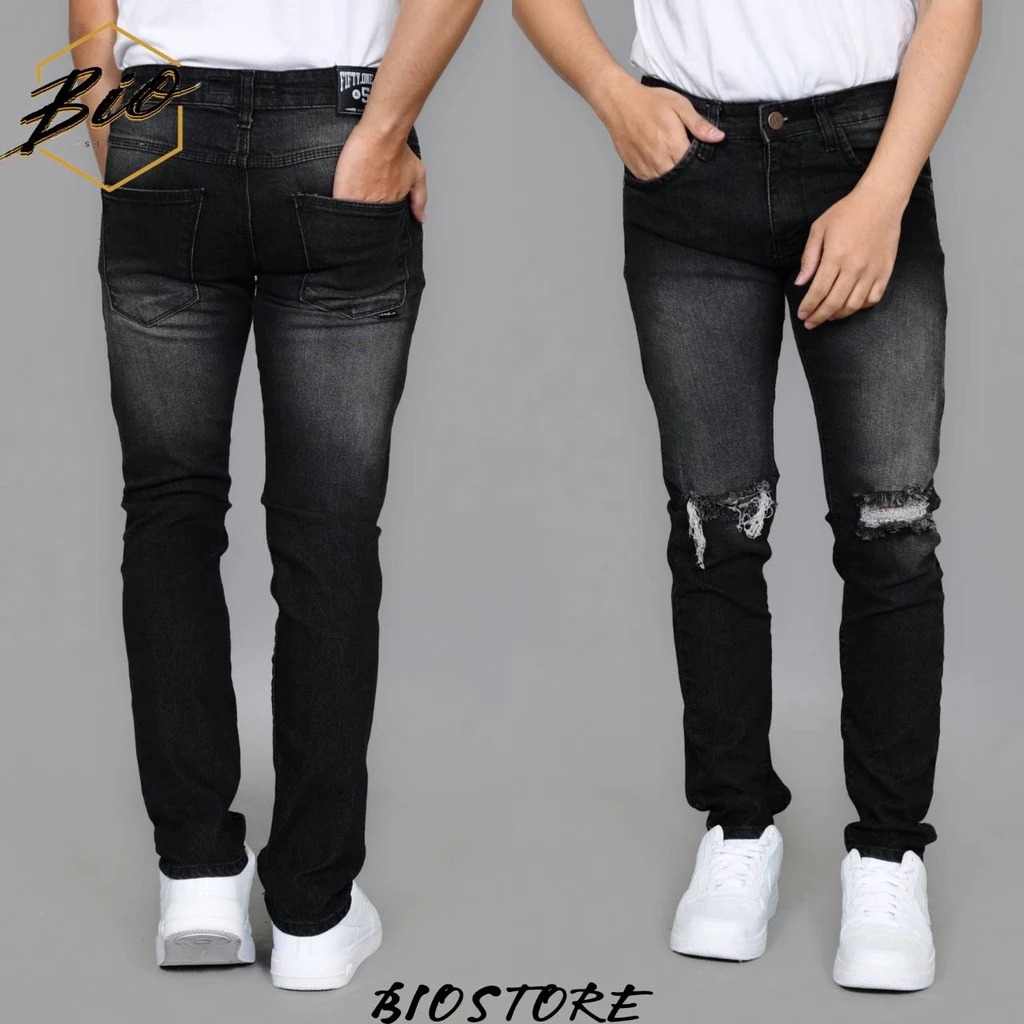 Celana Jeans Panjang Sobek Terbaru Jeans Slimfit Pria Original Black Jazz Bio Wosh Celana Pensil Pria 100% Distro