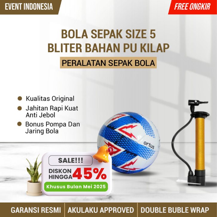 Bola Sepak Size 5 Bliter Olahraga Kaki Sport Bahan Pu Kilap Jahit Manual Kuat Rapi Aksesoris Peralatan Sepakbola Lengkap