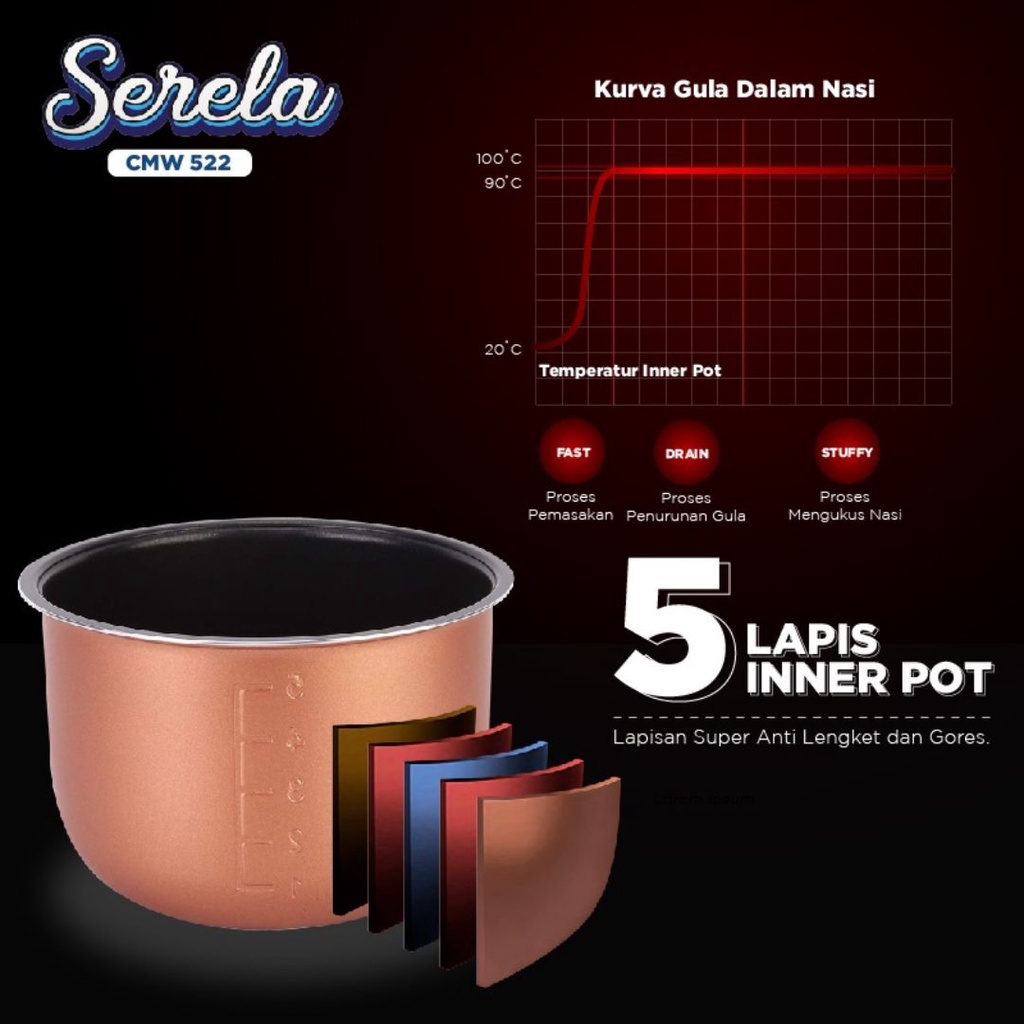 Rice Cooker Digital SEKAI Low Carbo CMW 522 / Penanak Nasi Magic Com Anti Gemuk 2 LITER