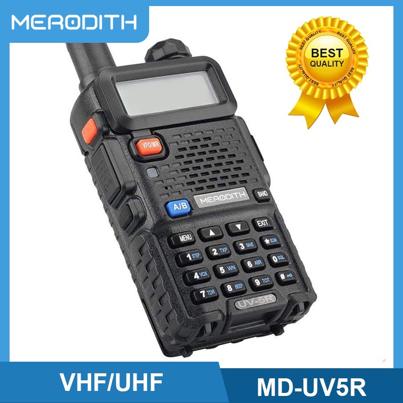 (INSTANT) HT HANDY TALKIE MERODITH UV-5R 5W VHF/UHF DUAL BAND 128 CHANNELS 2 WAY RADIO 1PCS (BLACK)