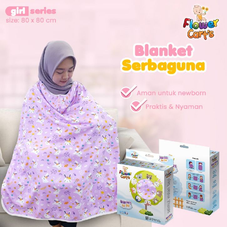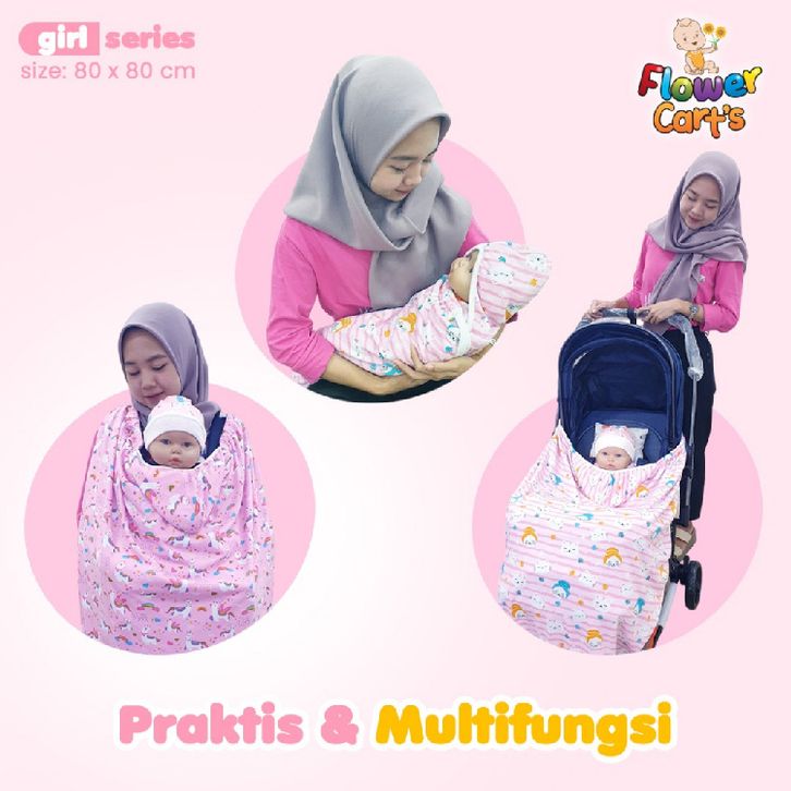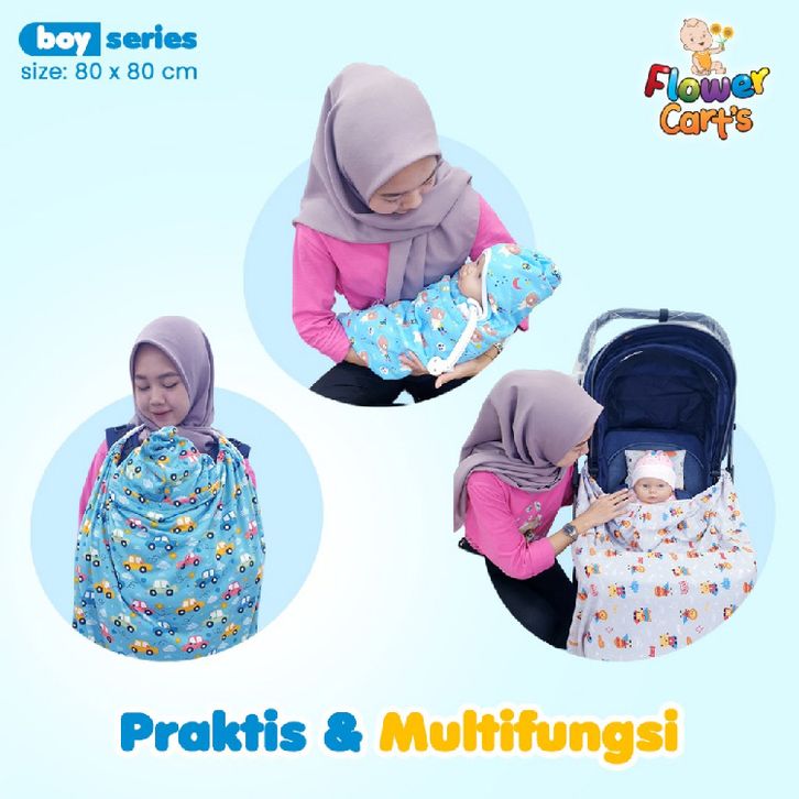 Selimut Bayi Blanket On The Go Flower Carts Blanket Bayi Multifungsi Selimut Baby Newborn Serbaguna Motif Boy / Girl