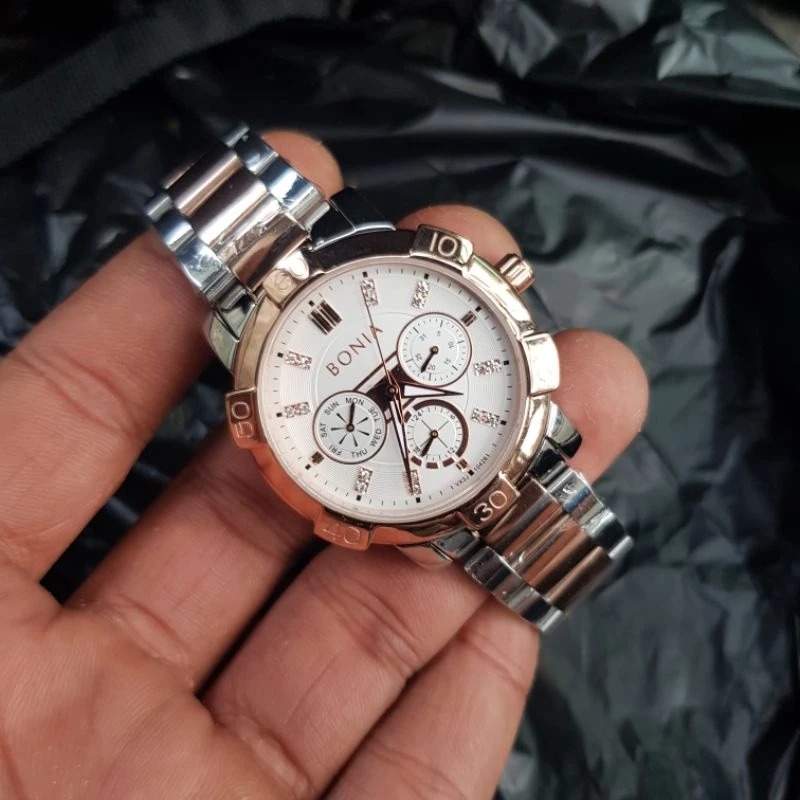JAM TANGAN WANITA BONIA BNB 10426 SILVER COMBI ROSEGOLD PUTIH - FREE ONGKIR - JAM TANGAN TERMURAH