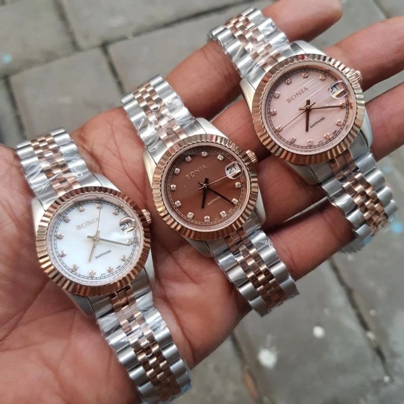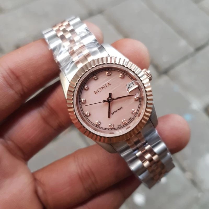 JAM TANGAN WANITA BONIA BNB 10087S SILVER COMBI ROSEGOLD PINK - FREE ONGKIR - JAM TANGAN TERMURAH