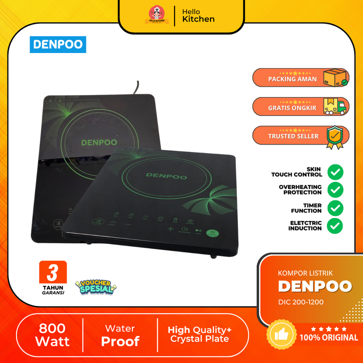 Denpoo DIC 200-1200 Touch Screen Low Watt Kompor Listrik 1 Tungku Kompor Listrik Portable Kompor Listrik Mini