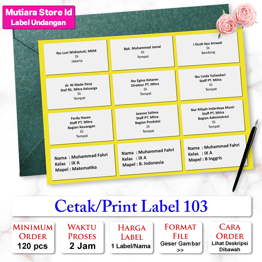 CETAK STIKER LABEL 103 POLOS / PRINT LABEL NAMA UNDANGAN PERNIKAHAN & BUKU PELAJARAN SEKOLAH