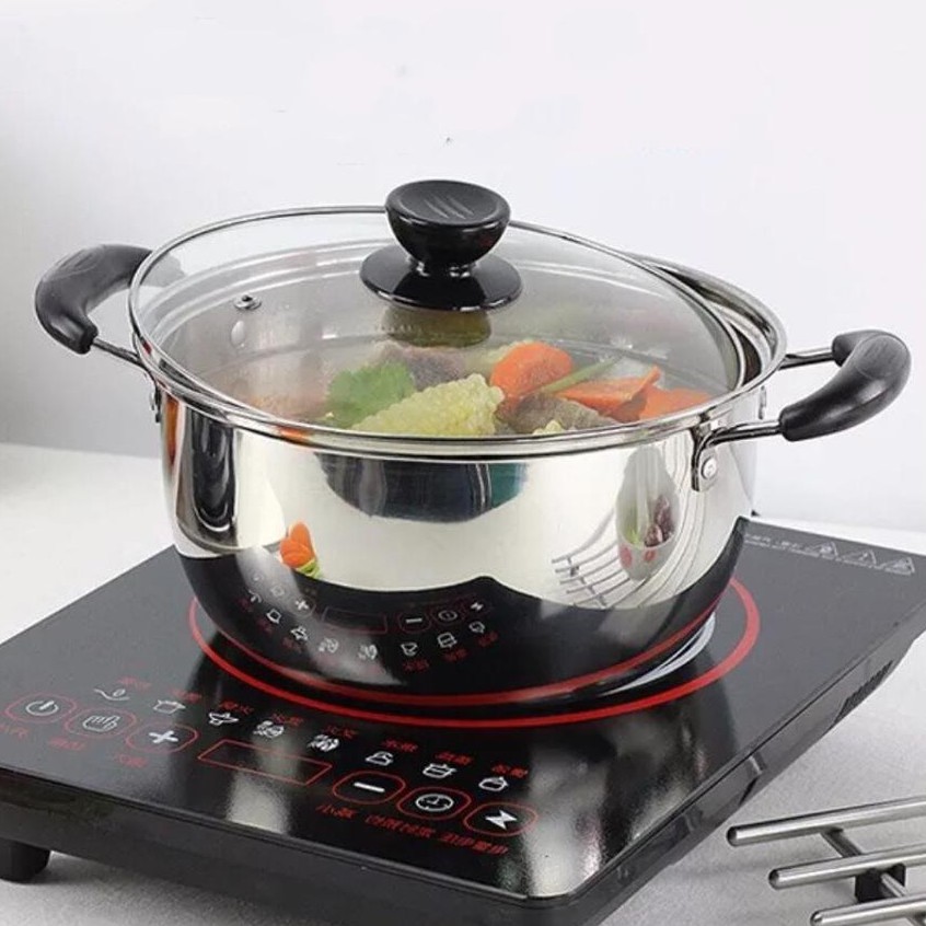 YY 26CM-SUP PANCI MIE SUSU SAYUR SOUP SOTO STAINLES 20/22/24cm DENGAN TUTUP KACA