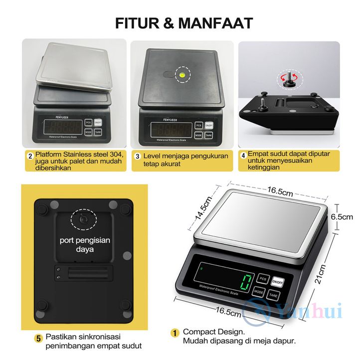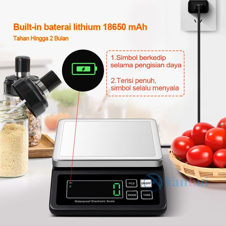 Digital Computing Scale 15kg /Timbangan Digital buah/Timbangan Dapur Digital Waterproof Charger USB