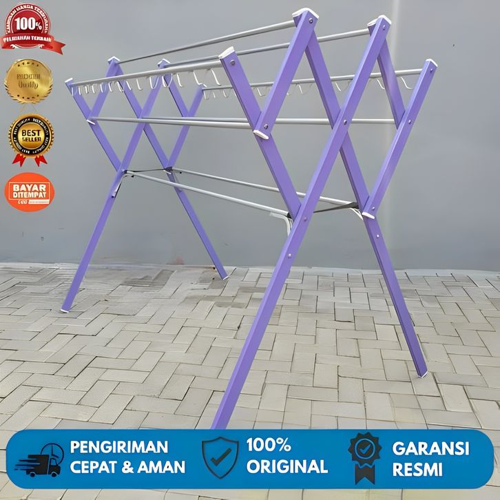 LIVINA Jemuran Baju Stainless Jumbo Aluminium Gantungan Baju Handuk Lipat Portable Uk 180cm 1,8m SNI Kuat Warna Lengkap