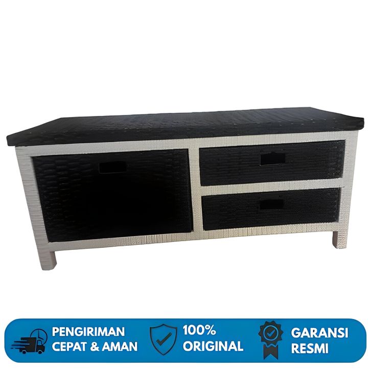 UKURAN BESAR Rak Tv Minimalis Modern Model Rotan Sintetis 32 Inch Ruang Tamu Meja Plastik Kayu Jati Kokoh Awet
