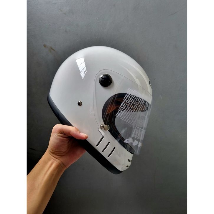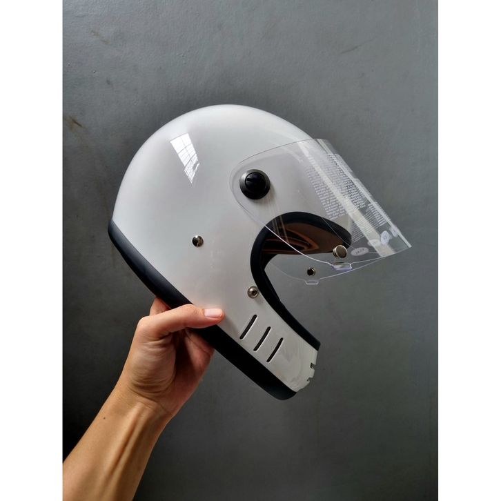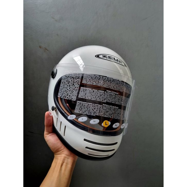 HELM MOTOR ZEUS ORIGINAL ZS 816E WARNA WHITE GLOSSY CAKIL RETRO SINGLE VISOR FULL FACE UKURAN M L XL GAYA RETRO FULLFACE