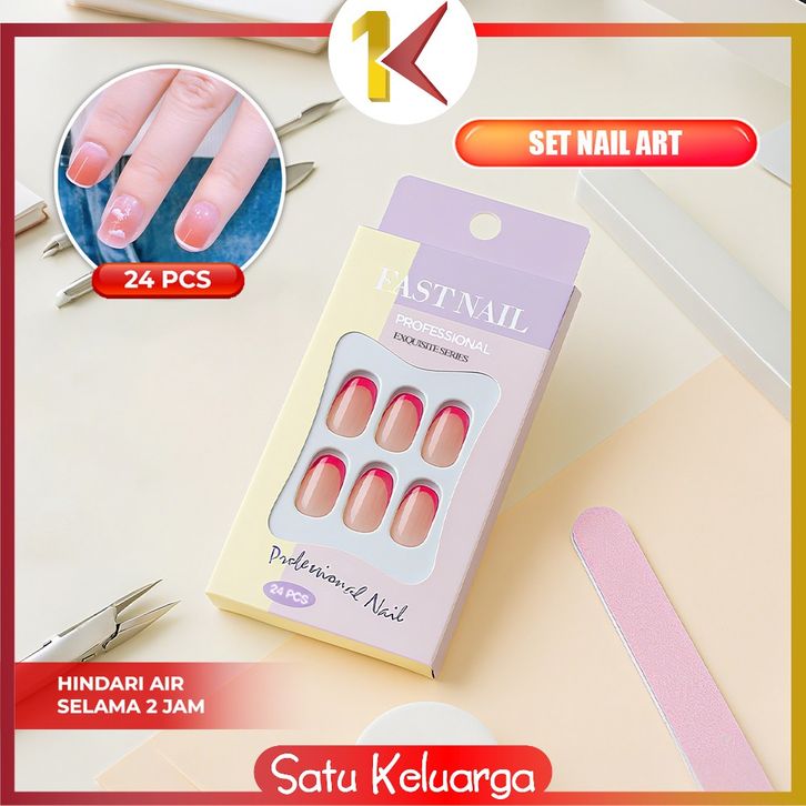 SK-K154 Kuku Palsu Motif Wanita 24pcs Free Sticker Lem Motif Cantik Kekinian / Set Nail Art Kuku Palsu Pengantin Fashion
