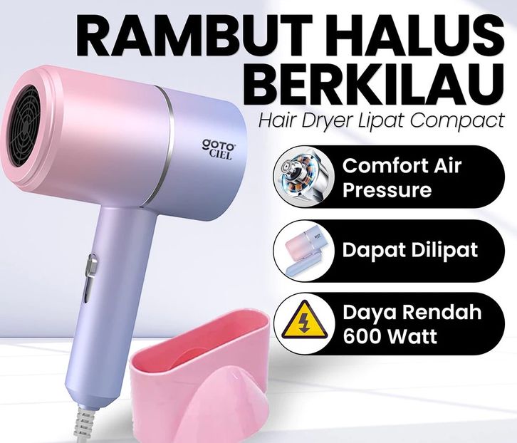 Hair Dryer Pengering Rambut Lipat Profesional Multifungsi Goto Ciel Rainbow Best Seller