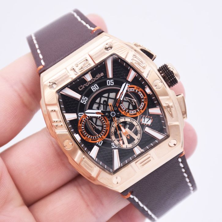 Original 100% Crocodile CM-405D24F Jam Tangan Pria Analog Kulit Chronograph Garansi 2 Tahun