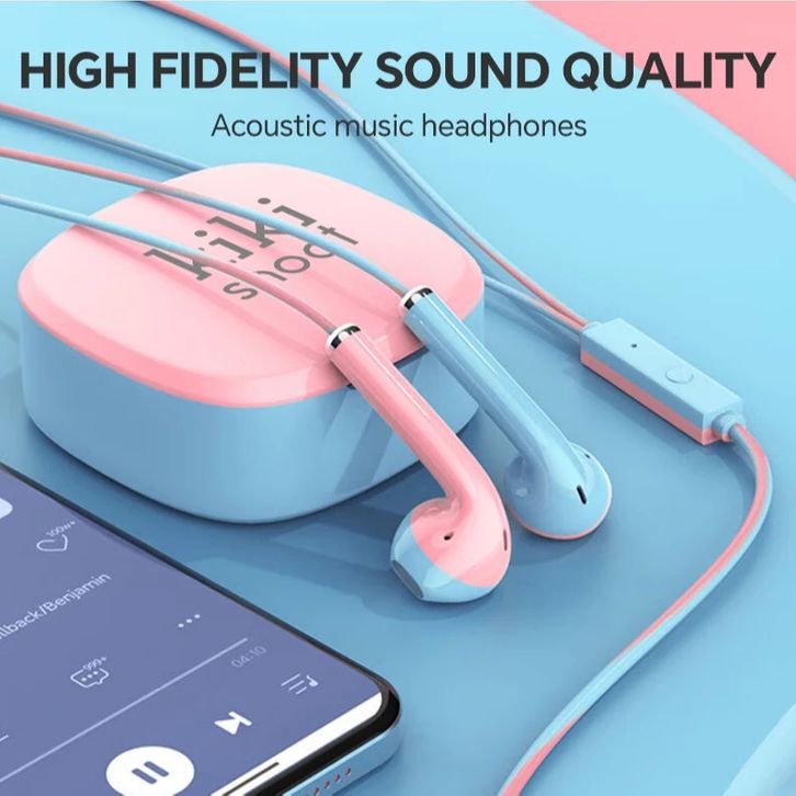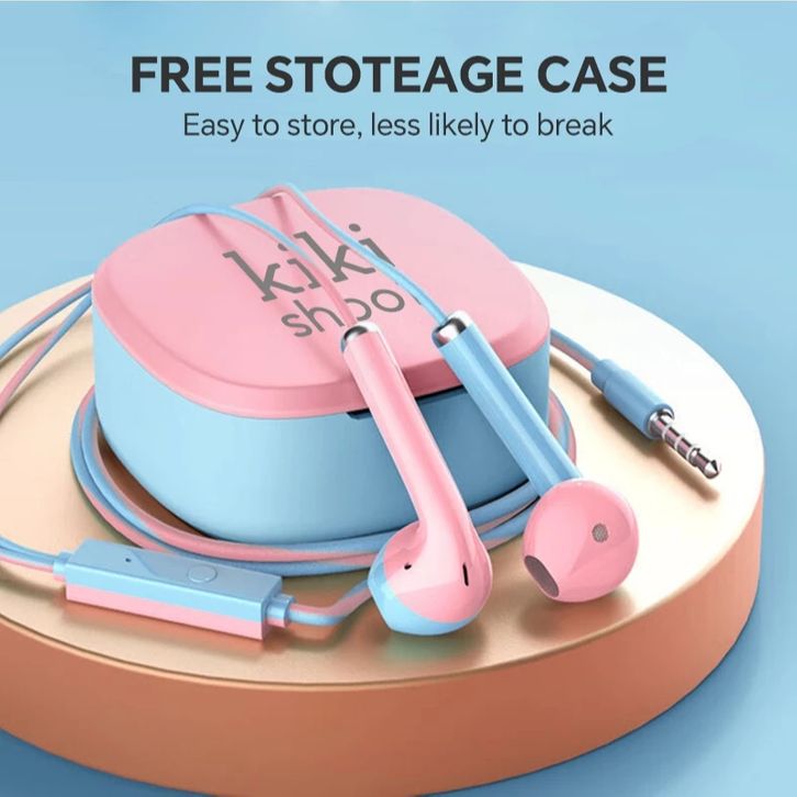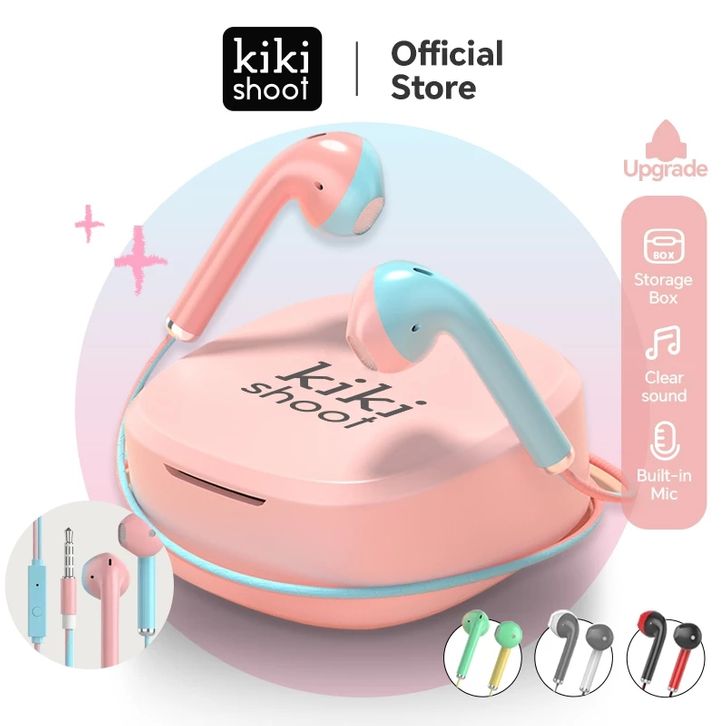 Headset 3.5mm Jack Wired Kabel Earphone Dual Color Macaron Storage Box Kikishoot