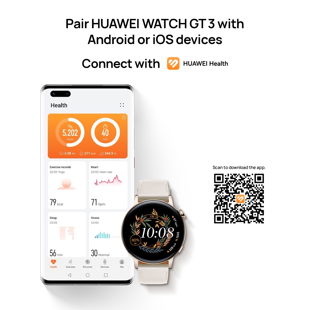 HUAWEI WATCH GT 3 42MM | ALL-DAY SPO2 MONITORING | 100+ WORKOUT MODES | DURABLE BATTERY LIFE