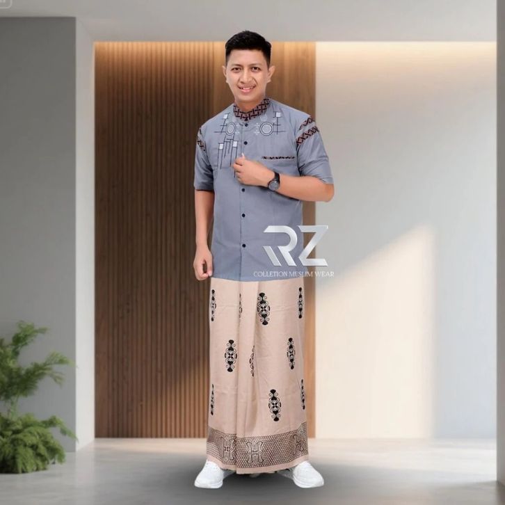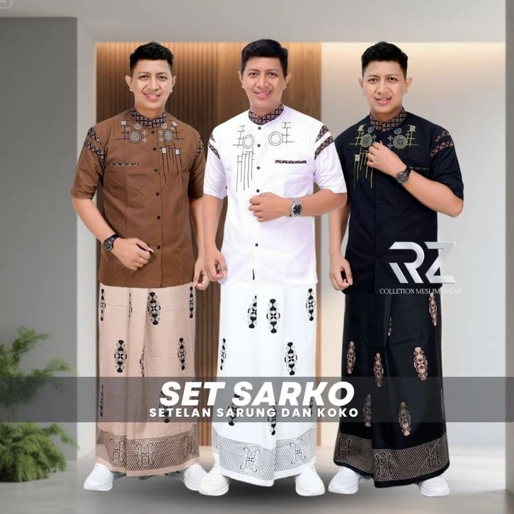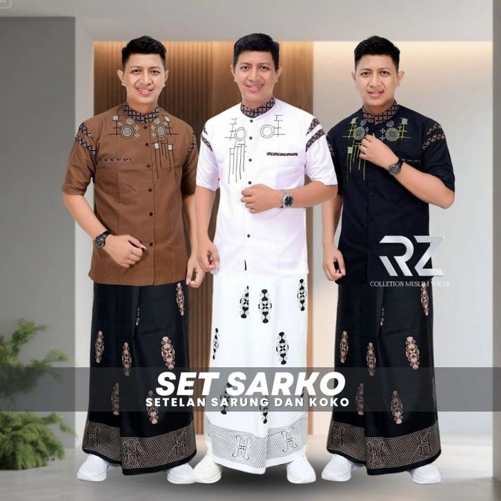 SETELAN SARUNG DAN BAJU KOKO PRIA MODERN MOTIF BORDIR TERBARU 2026 PREMIUM KATUN ADEM BAJU MUSLIM PRIA TERBARU 2026