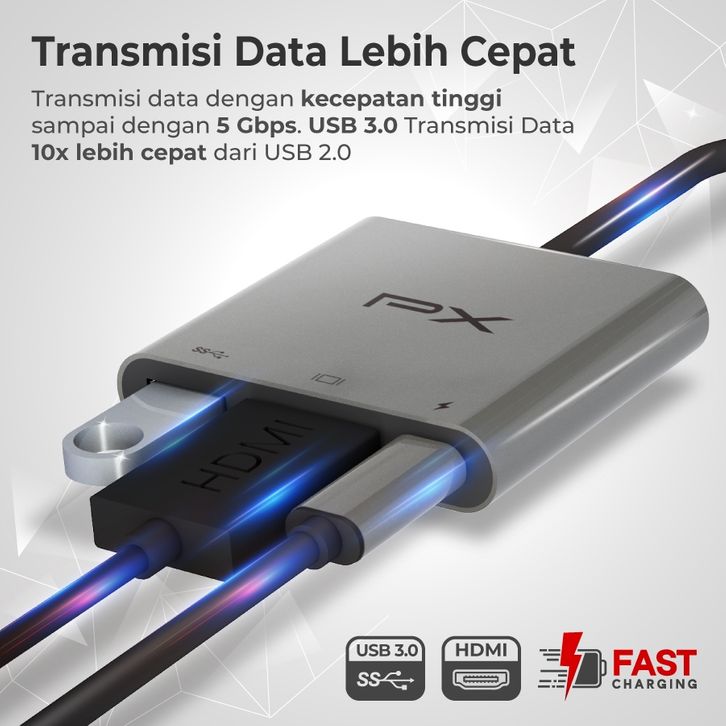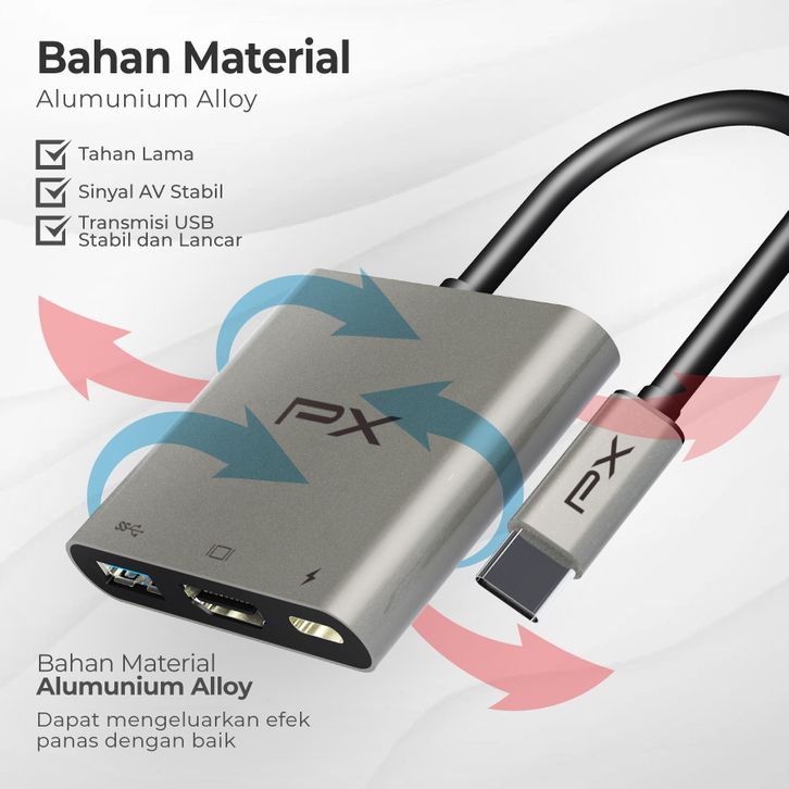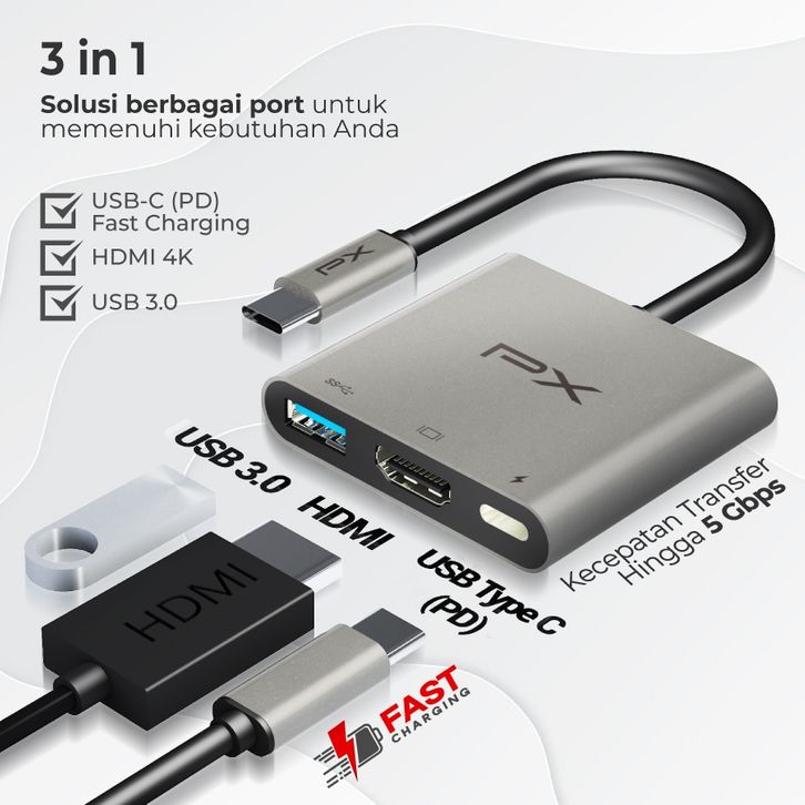 Converter Hub Adapter 3in1 USB Type C 3.1 to USB 3.0 4K HDMI PX UCH03