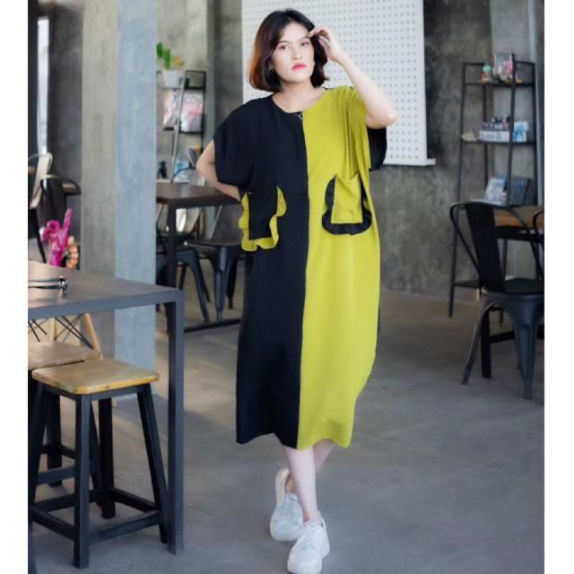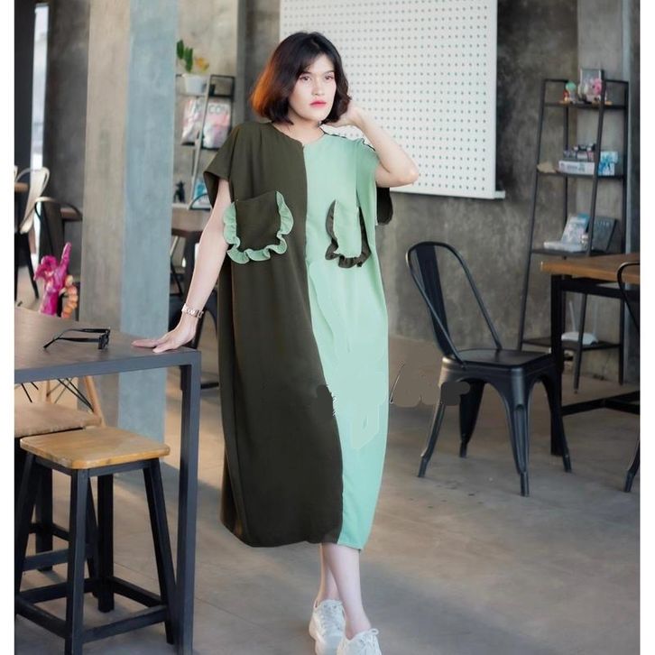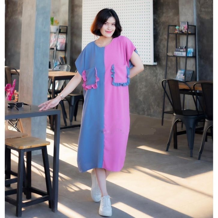 Alena Dress Daster Viral Kekinian Kombinasi Warna Crinkle / Daster Midi Dress
